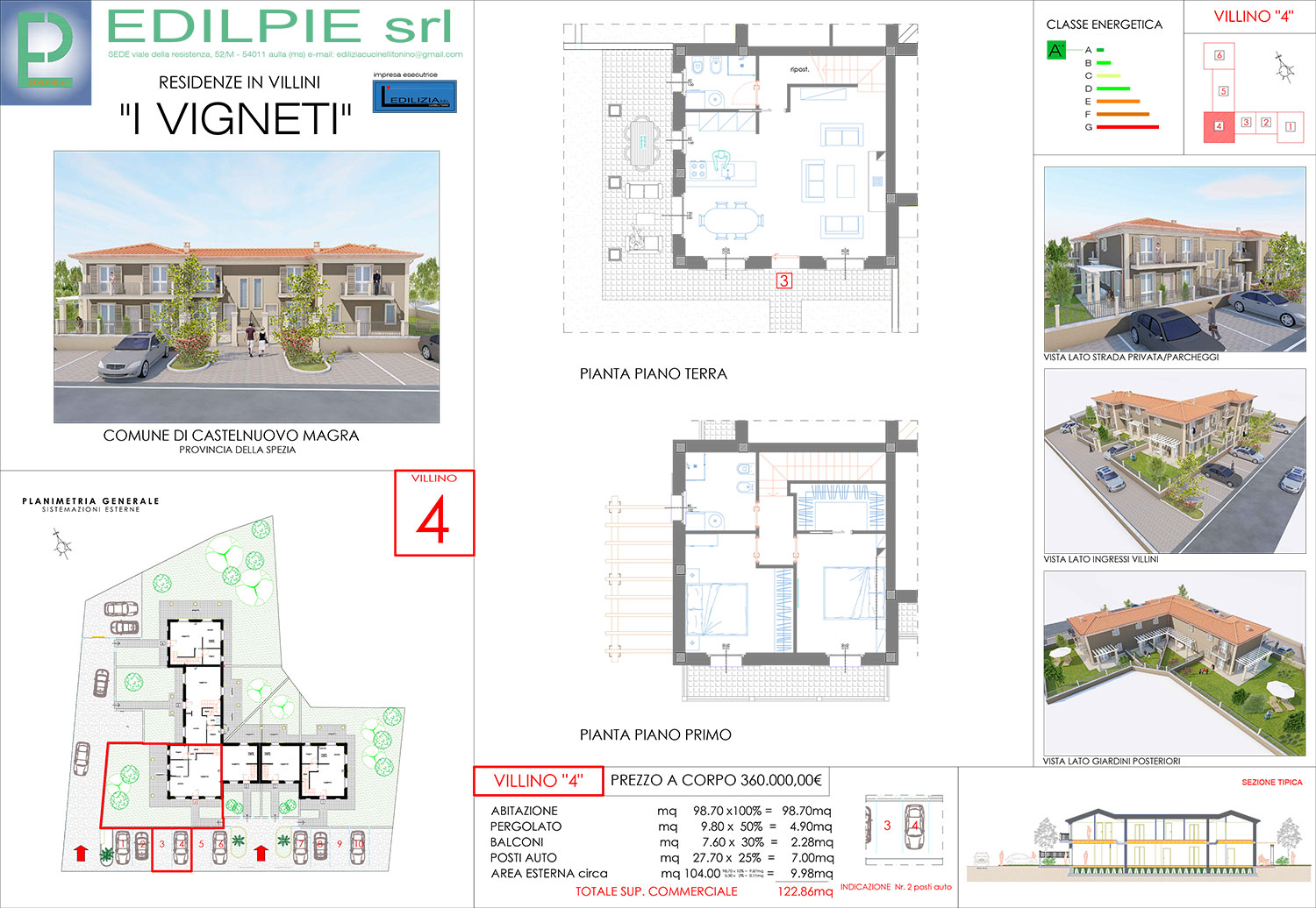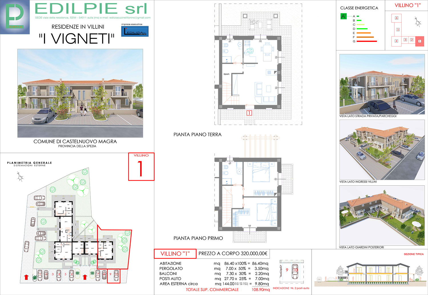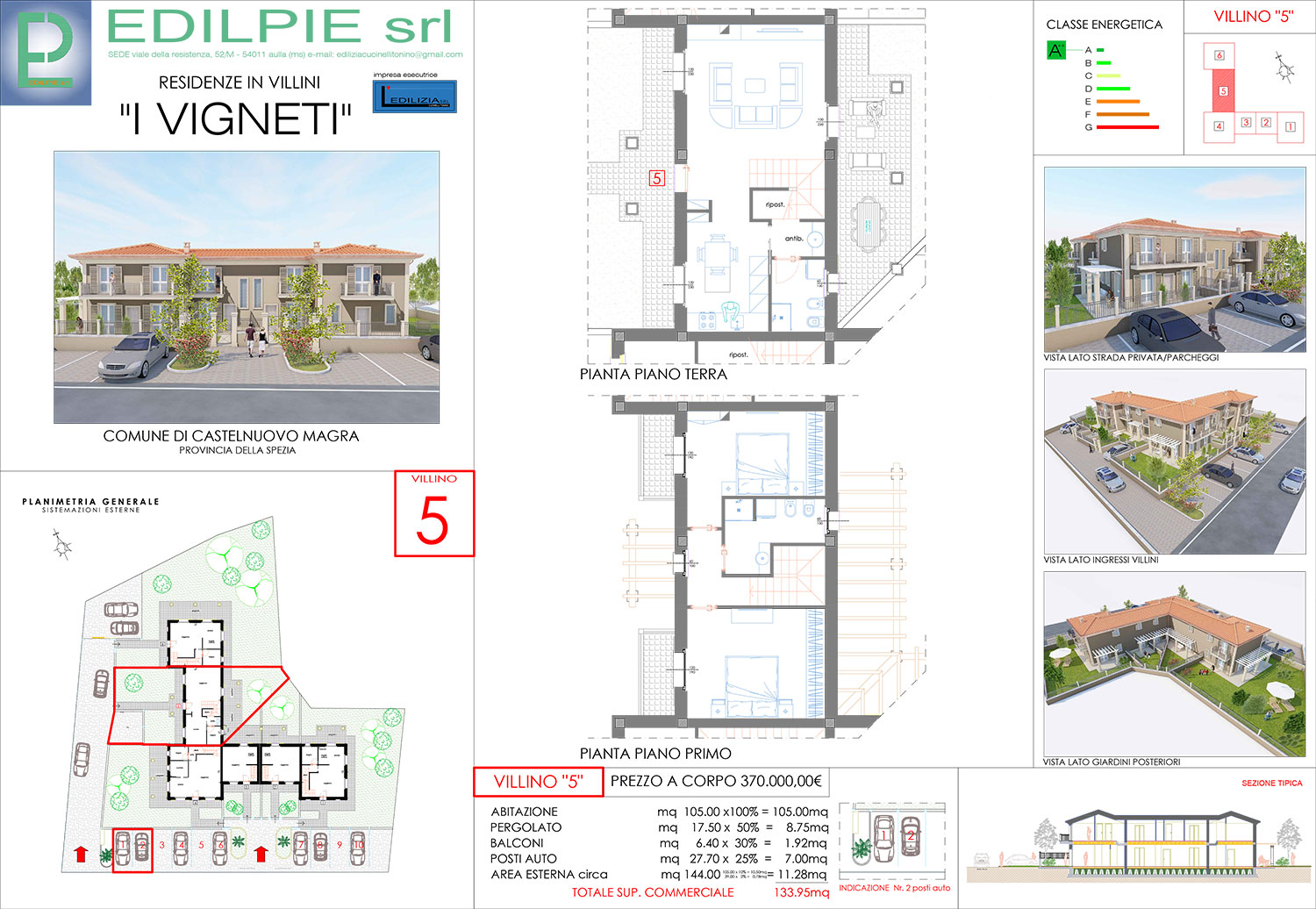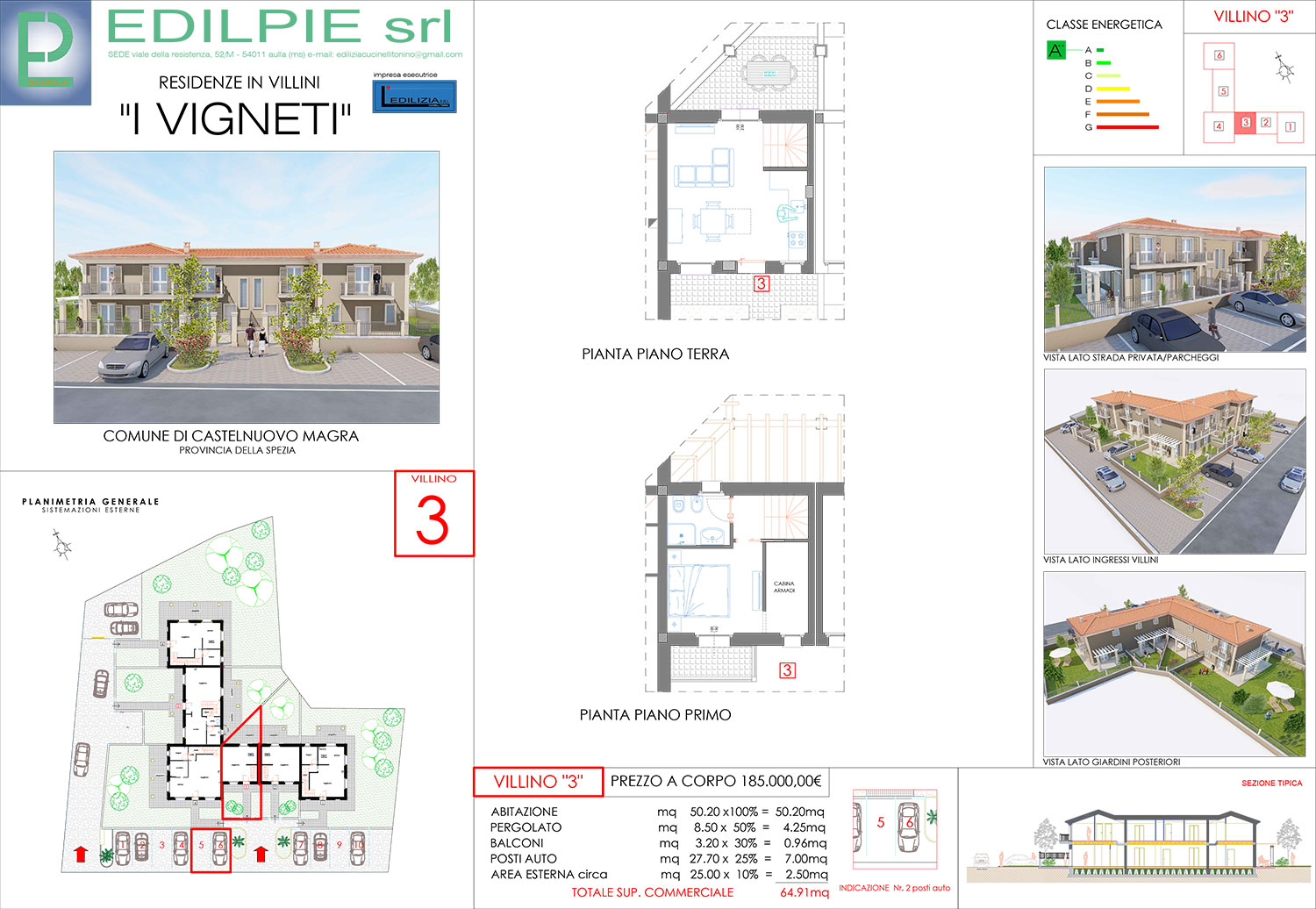 Nel cuore della pianura di Castelnuovo Magra fra le città di Sarzana e quella di Carrara, confinate con i nuovi vigneti delle cantine Lunae ed a poche centinaia di metri dalla stara statale Aurelia in ziona tranquilla e dotata di servizi pubblici, si propone elegante soluzione abitativa in villini a schiera terra tetto con giardini e posti auto privati, con eccellenti finiture e dettagli di lusso.